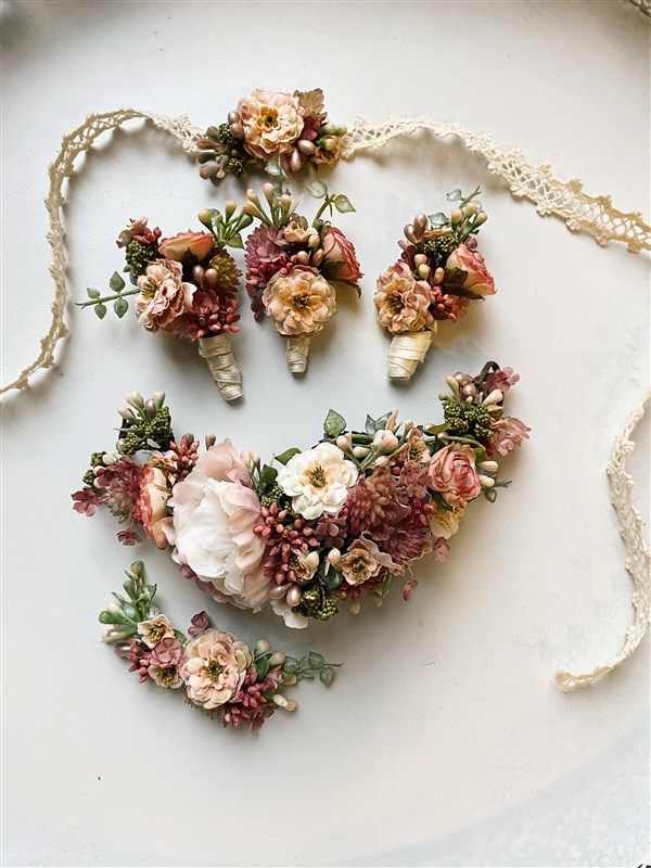 Alle meine Kreationen sind aus hochwertigen Kunst- und Seidenblumen angefertigt, die täuschend echt aussehen. Der Vorteil gegenüber echten Blumen ist eindeutig die Langlebigkeit. Der Blumenschmuck kann bereits zur Anprobe, bzw. zum Probestecken der Brautfrisur mitgenommen werden und an dem Hochzeitstag, egal wie heiß es wird, sehen die Blumen immer frisch aus.