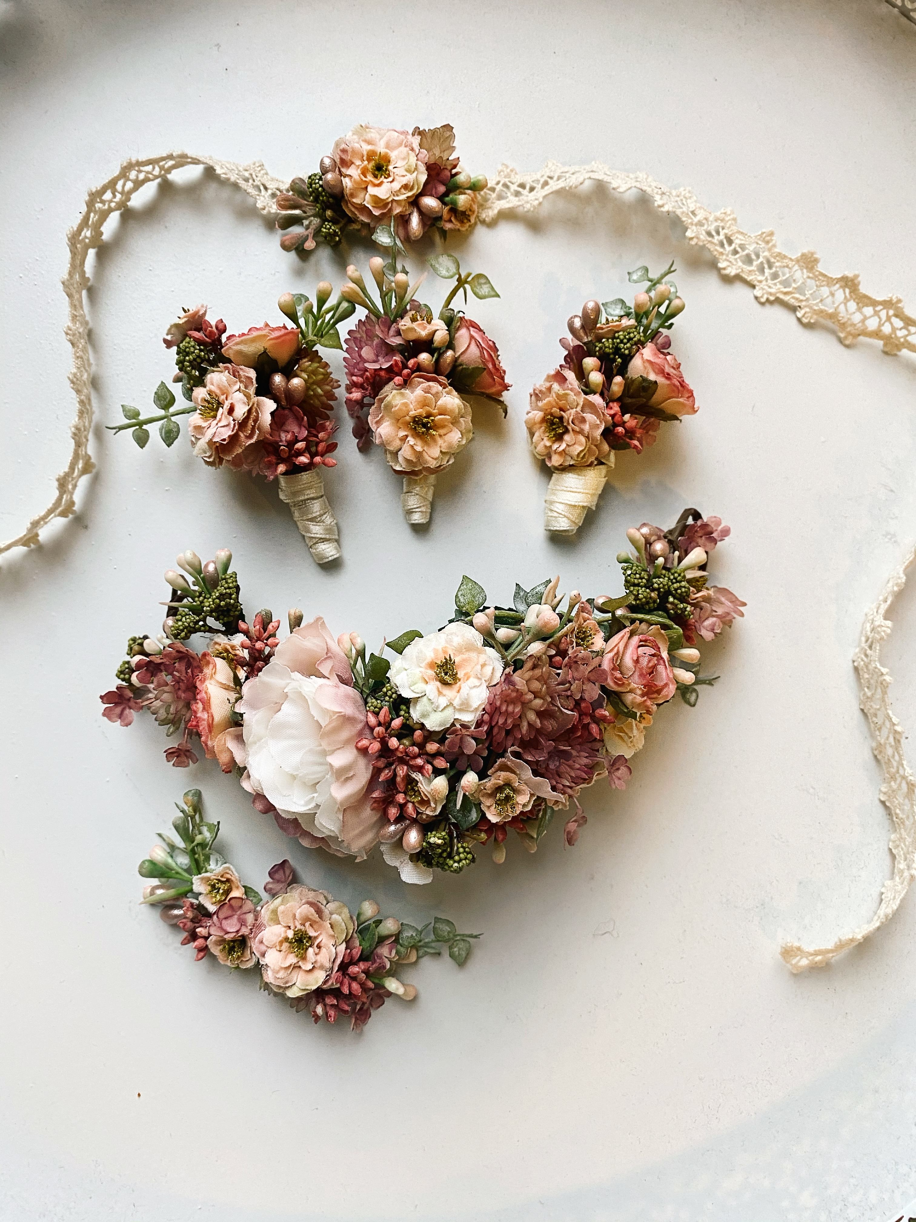 Der Haarschmuck wird je nach Wunsch individualisiert. Beim Gestaltungsprozess dürft ihr gerne mitwirken.