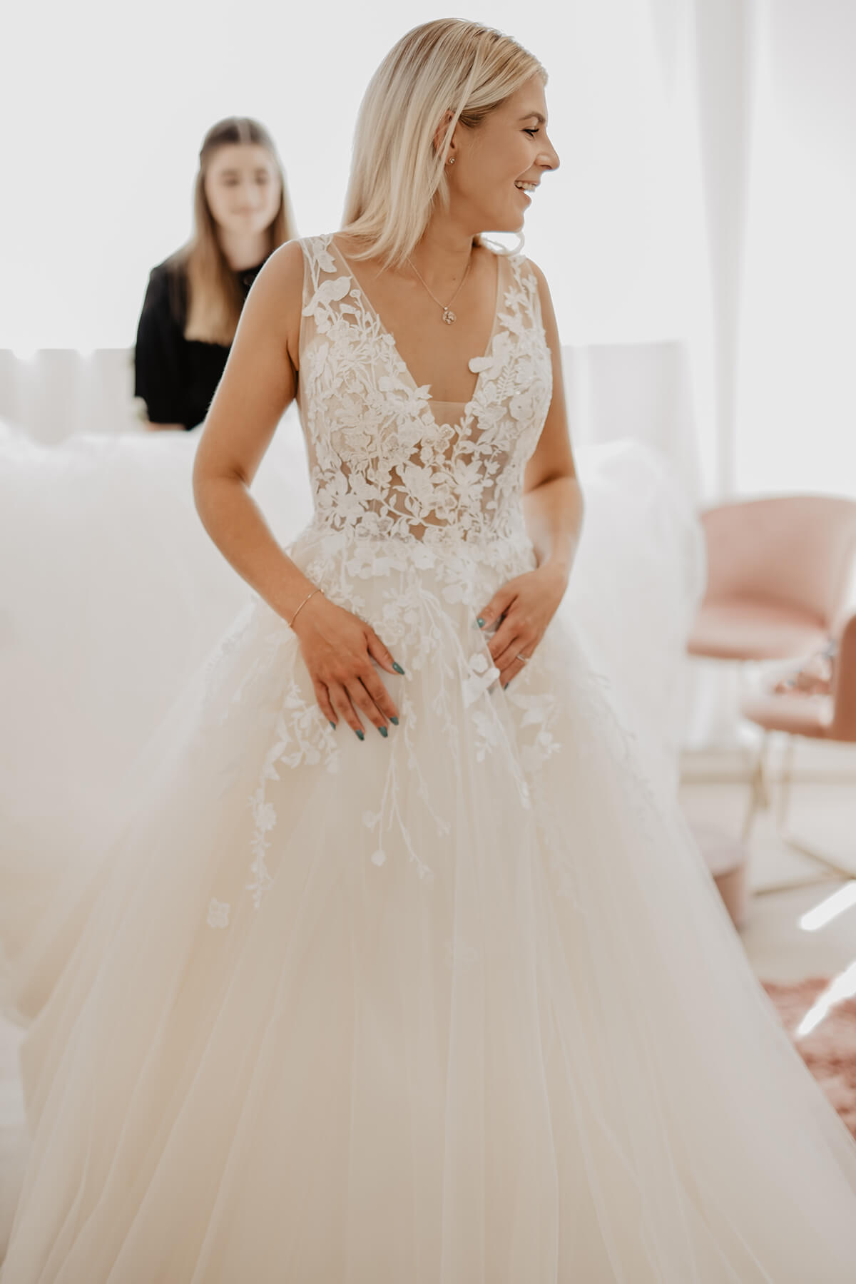 Bei deiner Anprobe steht dir und deinen Begleitungen unsere Braut Boutique exklusiv zur Verfügung. Wir nehmen uns besonders viel Zeit für dich und gehen individuell auf deine Wünsche und Vorstellungen ein, damit du dich an deinem Hochzeitstag wohl fühlen kannst.