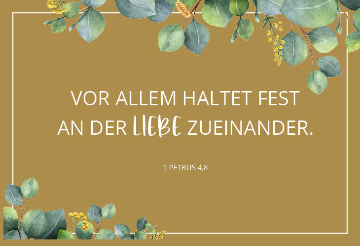 "Vor allem haltet fest an der Liebe zueinander; denn die Liebe deckt viele Sünden zu."